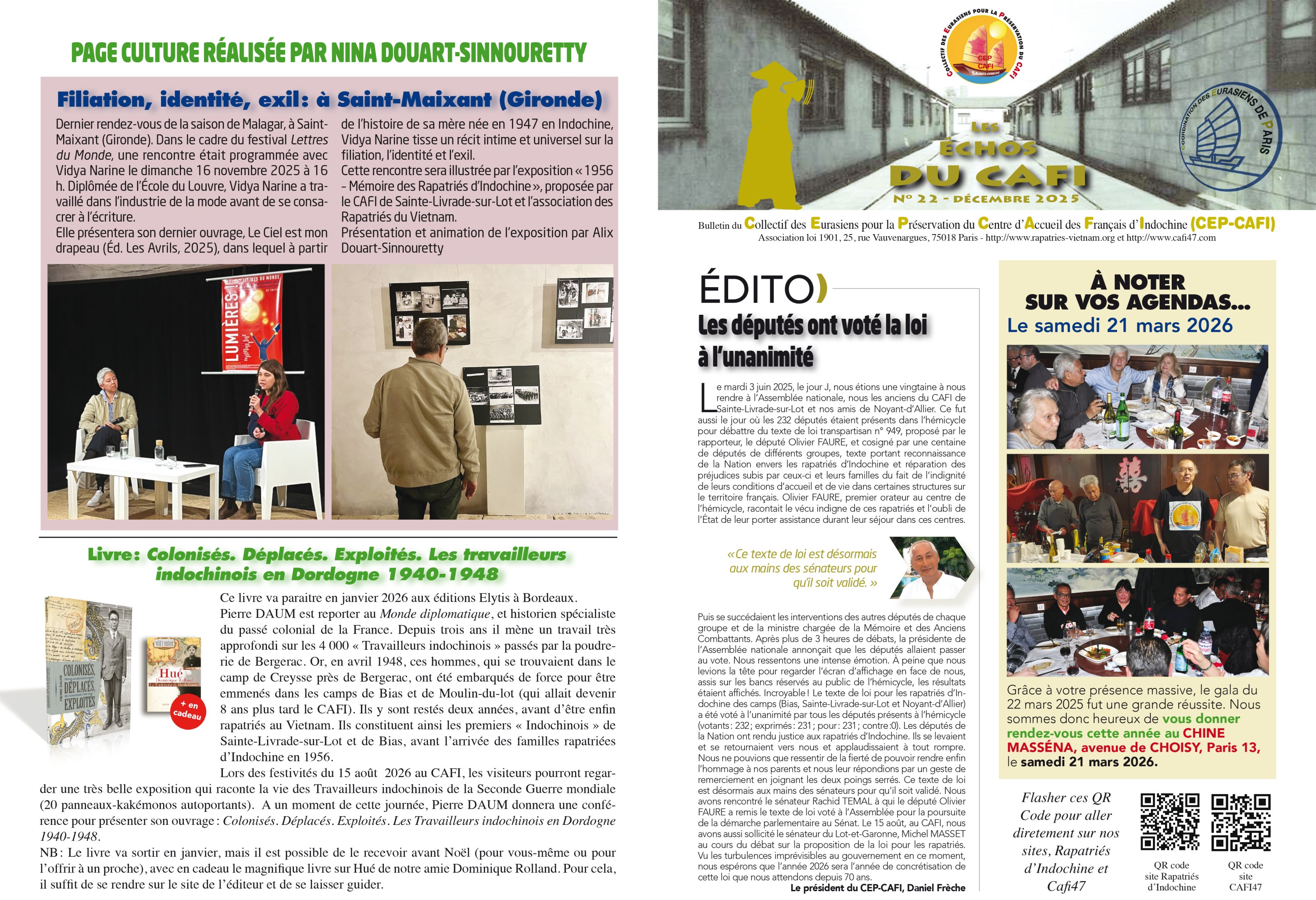L’année 2026 s’annonce pleine de projets et d’ambitions. Nous serons heureux de pouvoir les concrétiser et les construire avec vous pour les 70 ans du CAFI. Ce sont des occasions de faire vivre notre mémoire. Si vous avez des propositions à nous faire, nous serons ravis de vous entendre.