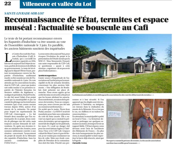 Pour toute information complémentaire, consultez le site internet : Cafi47.com pour voir le projet de loi concernant les rapatriés d’Indochine de Sainte-Livrade-sur-Lot et de Noyant.