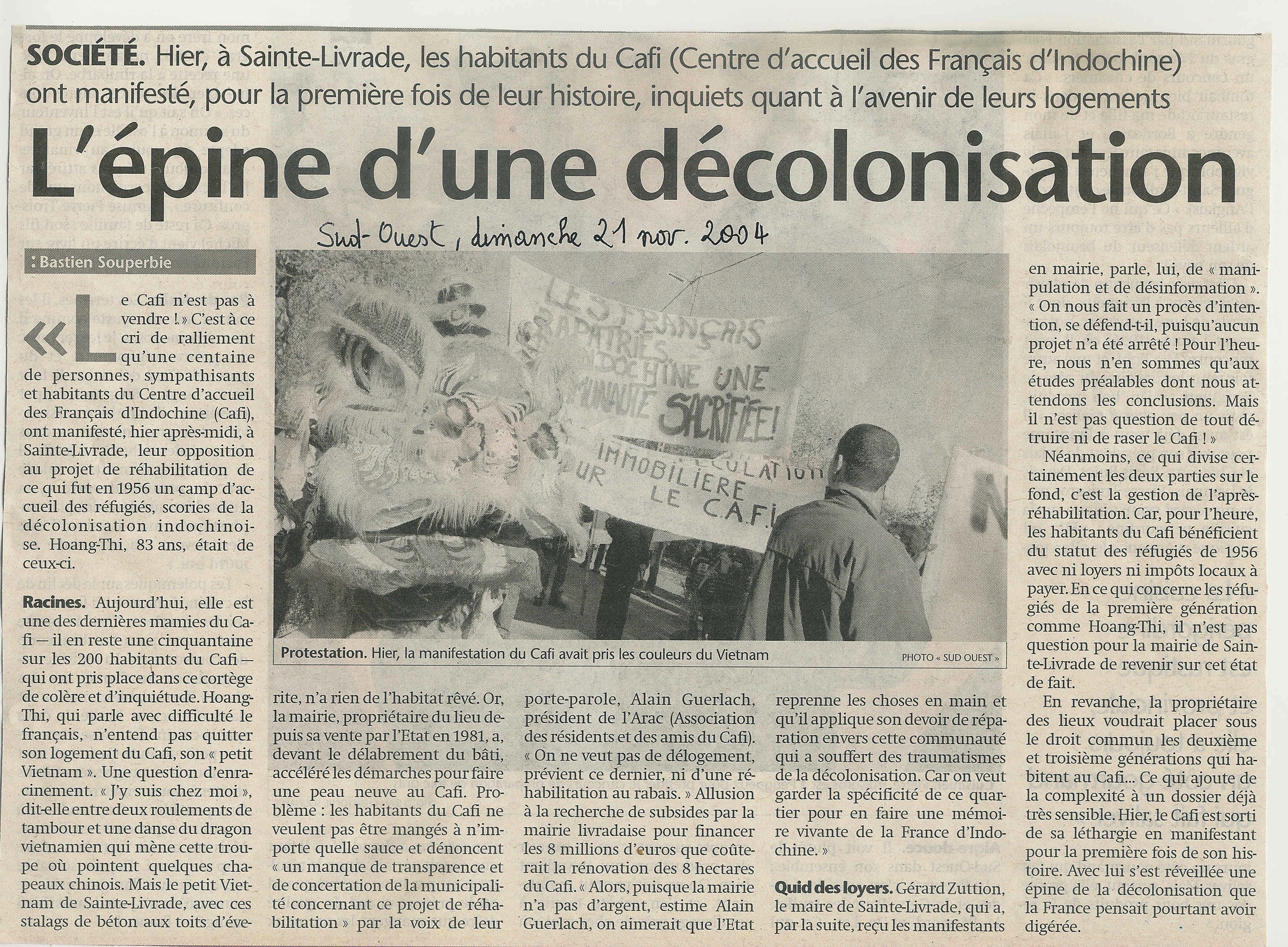 L’épine d’une décolonisation Published 21 septembre 2013 at 3064 × 2252 in L’épine d’une décolonisation « L’épine d’une décolonisation » – Sud-Ouest – 21 novembre 2004