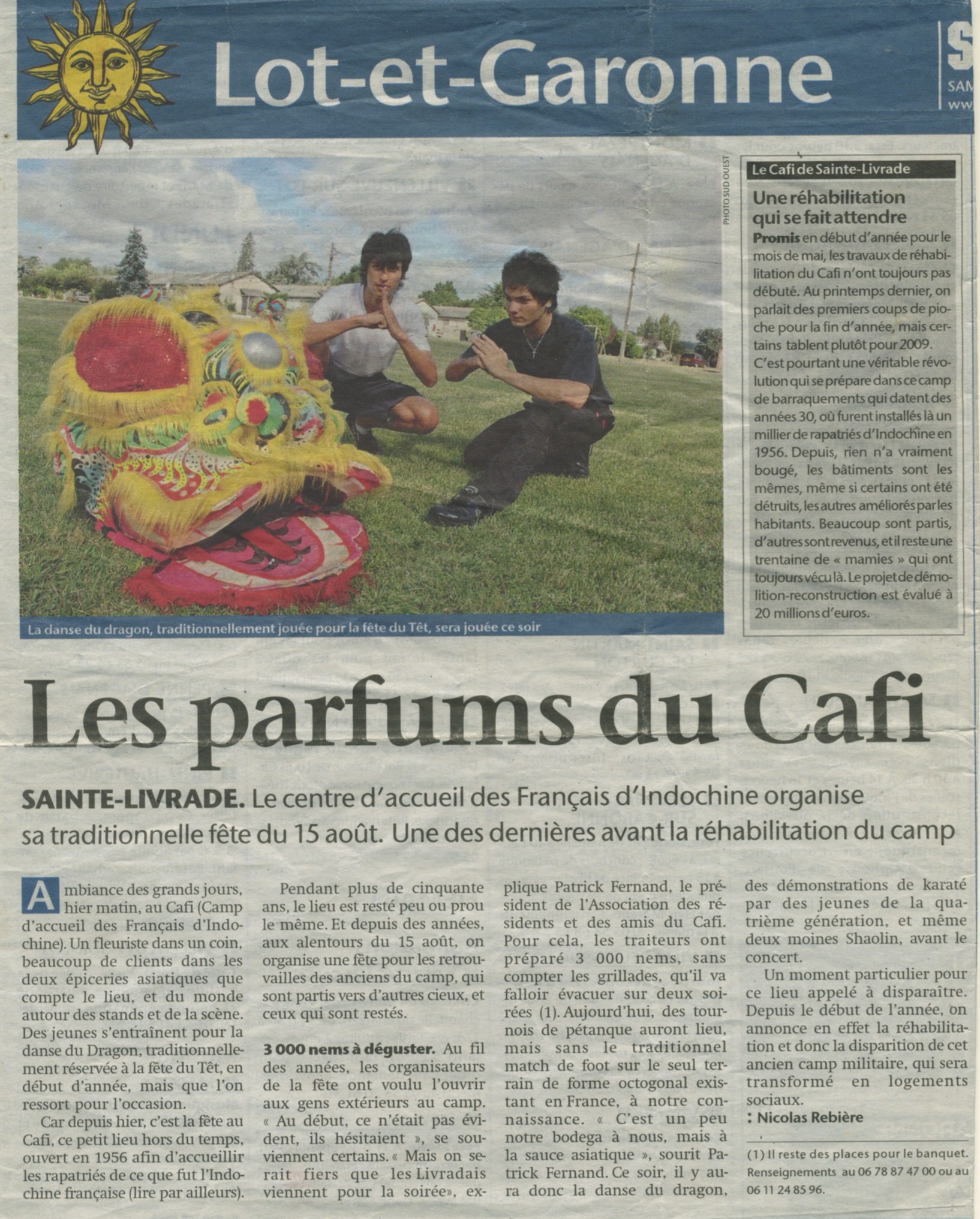 Sud-Ouest 16:08:08 Published 24 octobre 2013 at 1634 × 2033 in Sud-Ouest 16:08:08 Les parfums du CAFI – Sud-Ouest du 16 août 2008